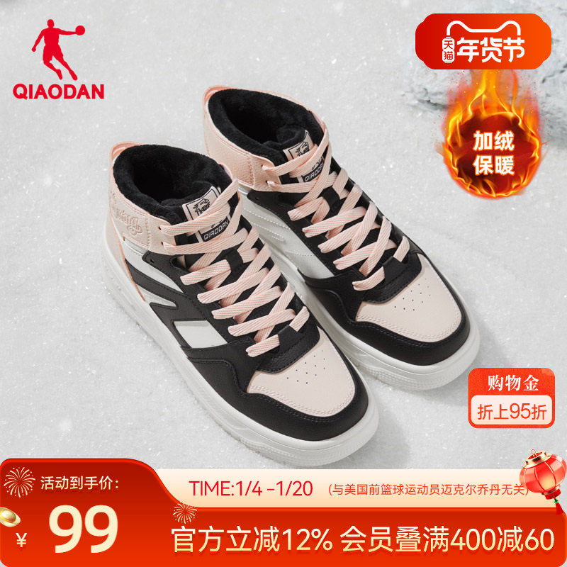 乔丹黑粉高帮加绒板鞋2025年冬女款运动鞋增高防滑耐磨保暖棉鞋