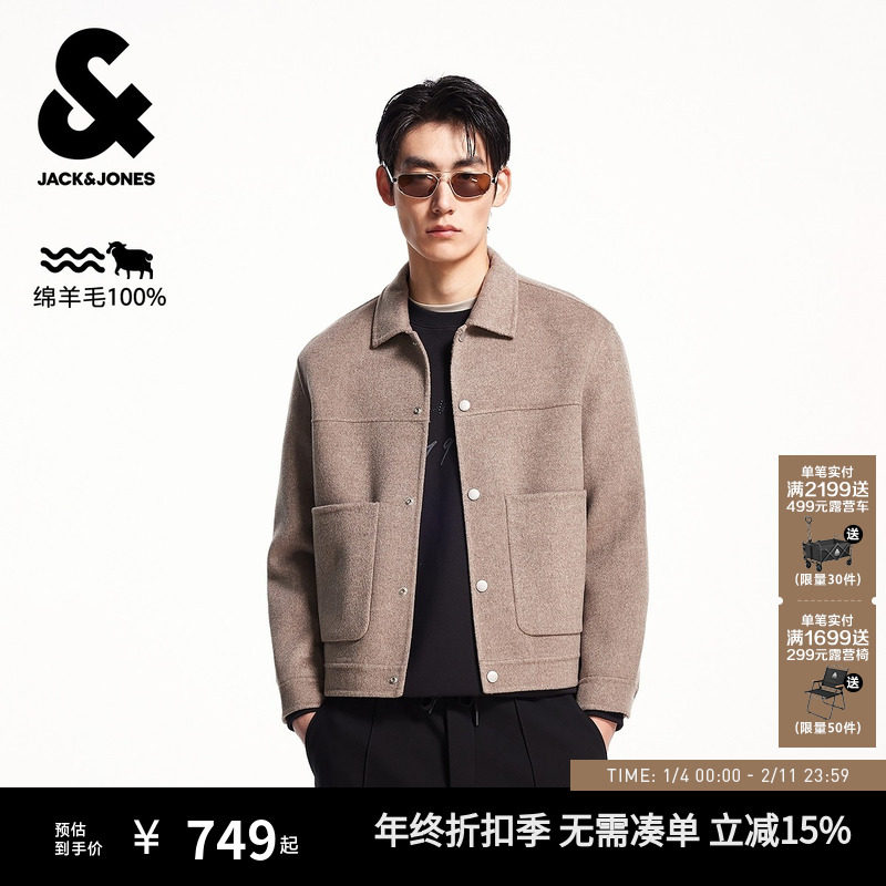 杰克琼斯秋冬新款质感纯羊毛外套短款毛呢大衣男装225427005