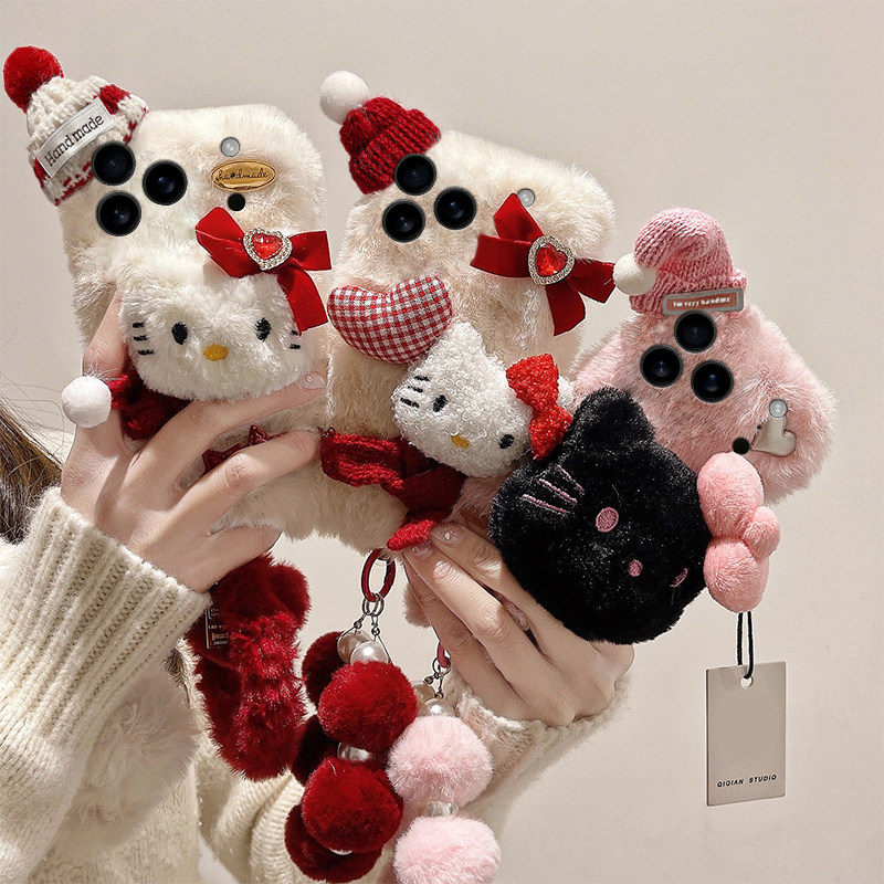 星星凯蒂猫适用苹果17promax手机壳华为pura80荣耀400pro小米15立体vivos30毛茸茸opporeno14秋冬季x200手环p