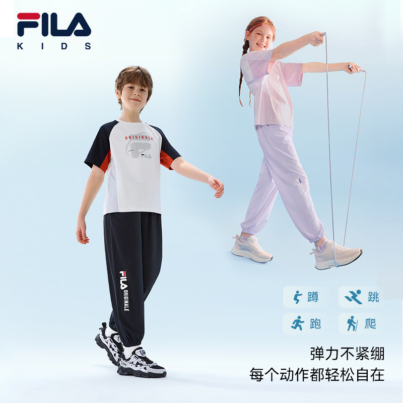 【抗菌功能】FILA斐乐童装裤子2025夏季新款男女童加绒运动休闲裤