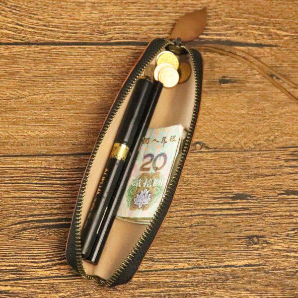 鞣钢笔复古文艺真皮收纳包女士文具笔袋牛皮手工潮原创新款眉笔植