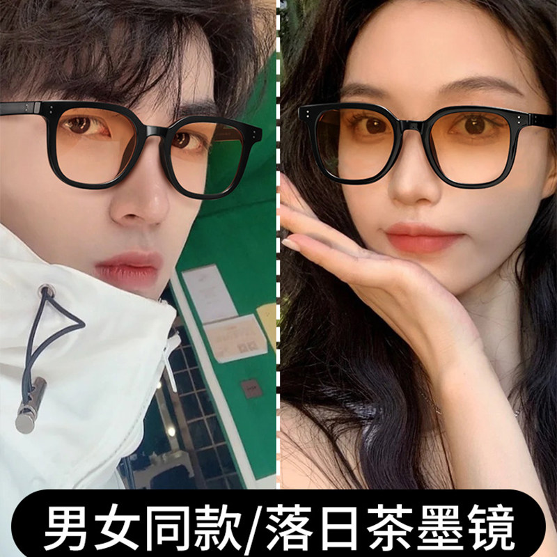 GM日落渐变黑框男款近视墨镜茶色腮红男士女夏防晒镜片防蓝光素颜
