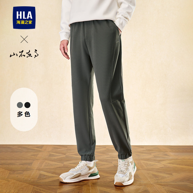 HLA/海澜之家亦心即为休闲裤春夏季新款弹力刺绣锥形卫裤子男士