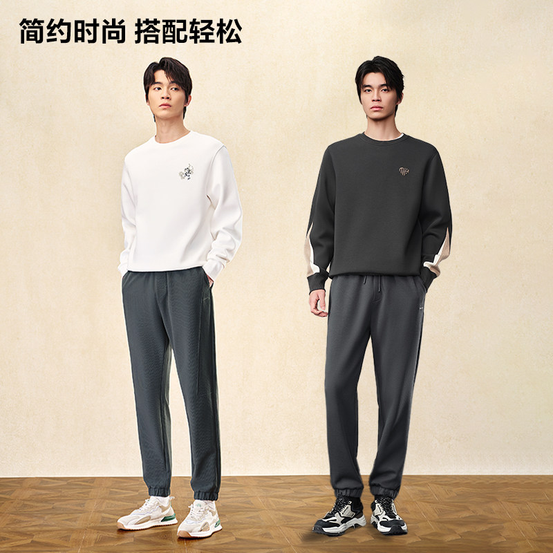 鸭鸭羊毛蚕丝保暖卫裤2025秋季新款男士系带松紧宽松百搭休闲裤Y