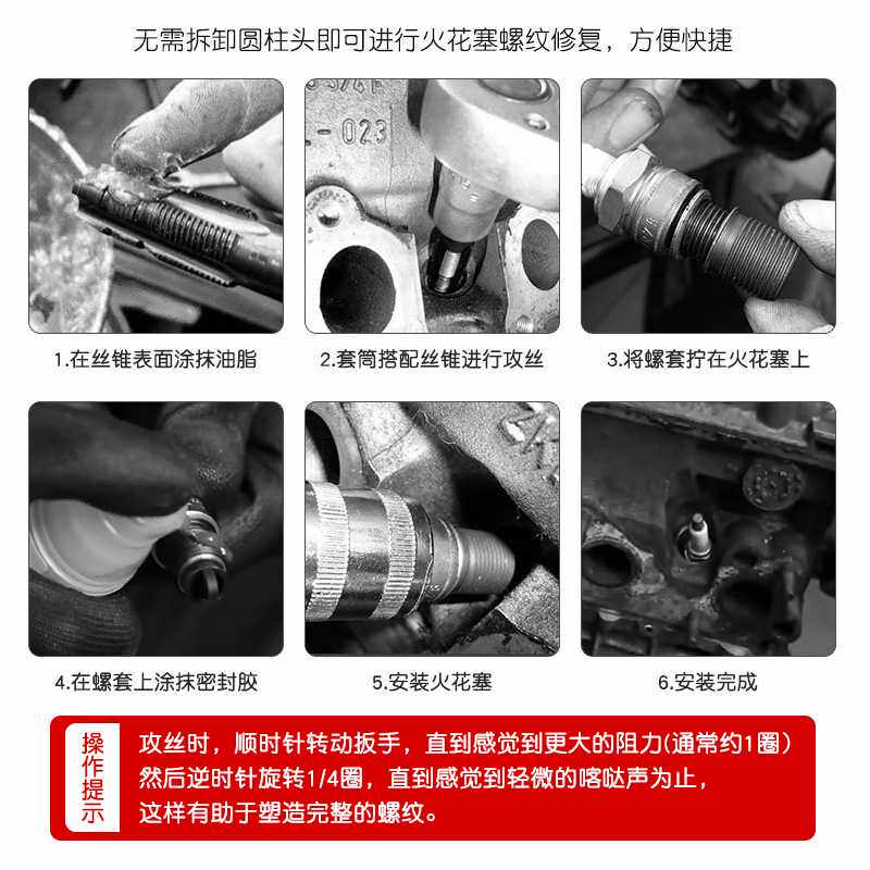 汽车火花塞螺纹修复工具攻丝螺套螺牙维修再生丝锥绞手开牙攻牙器