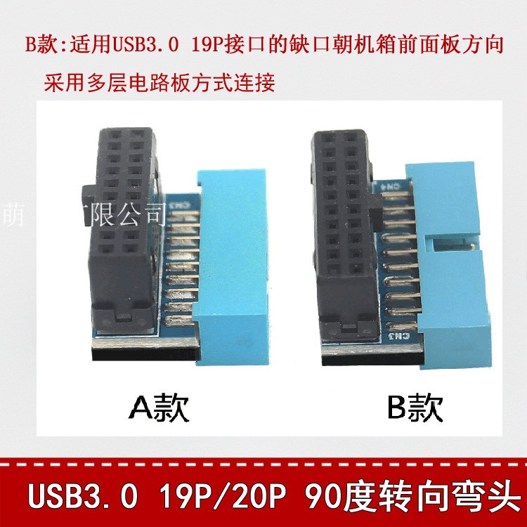 AB款台式机主板USB3.0 19Pin/20Pin插座90度转向弯头高速转换接头