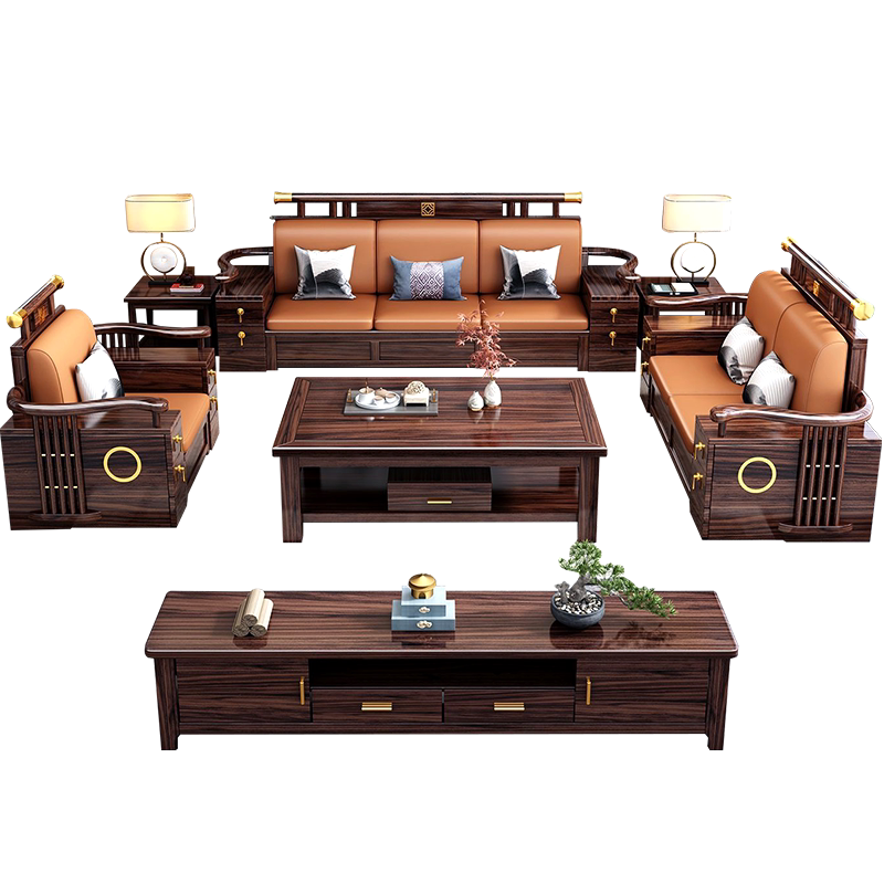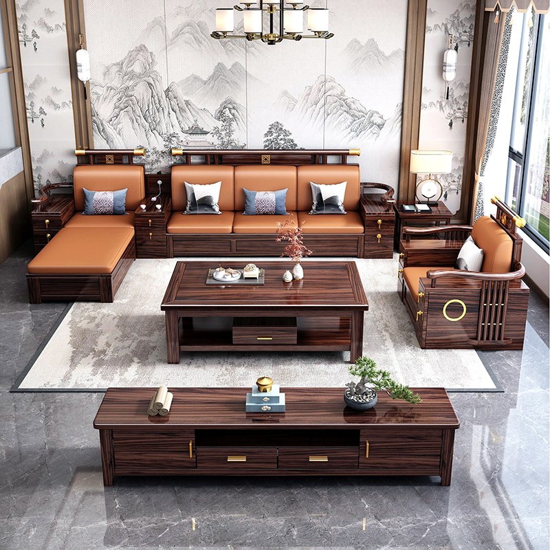 新中式乌金木实木沙发组合大小户型客厅冬夏两用别墅现代储物家具