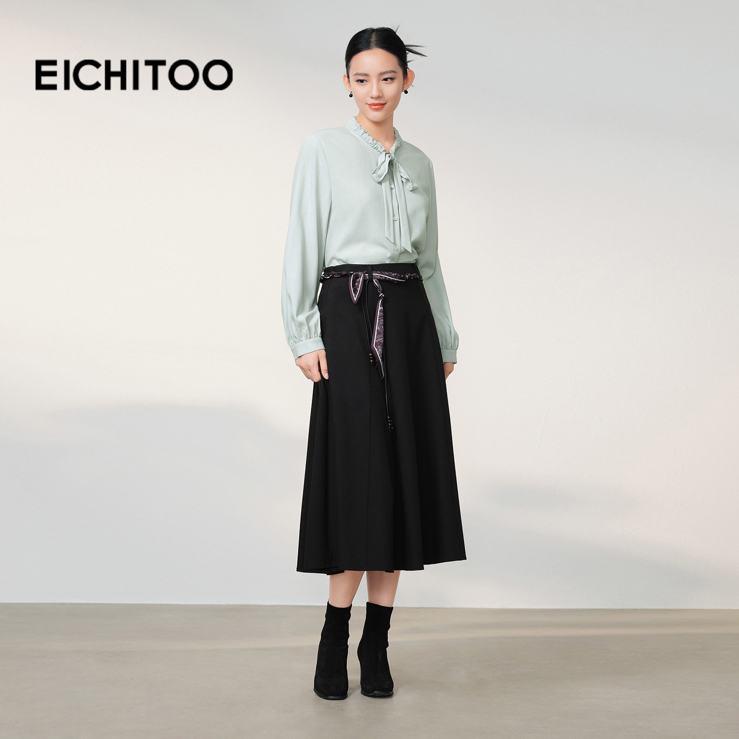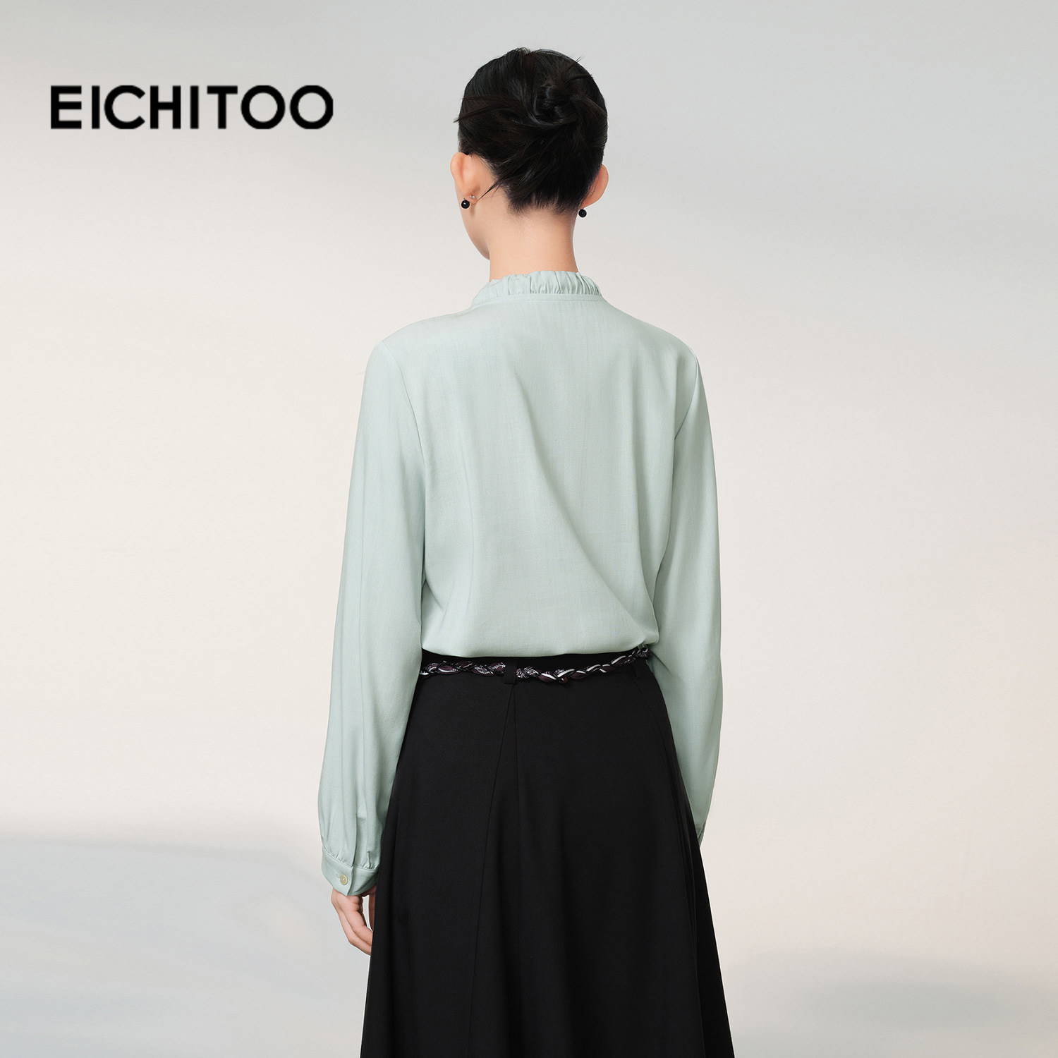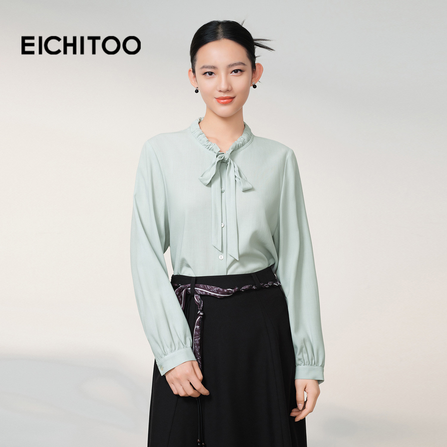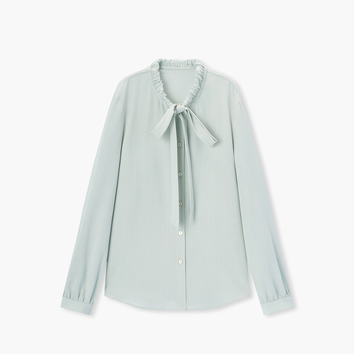 爱居兔含莱赛清新素雅系带领衬衫女2026年春季新款气质长袖上衣