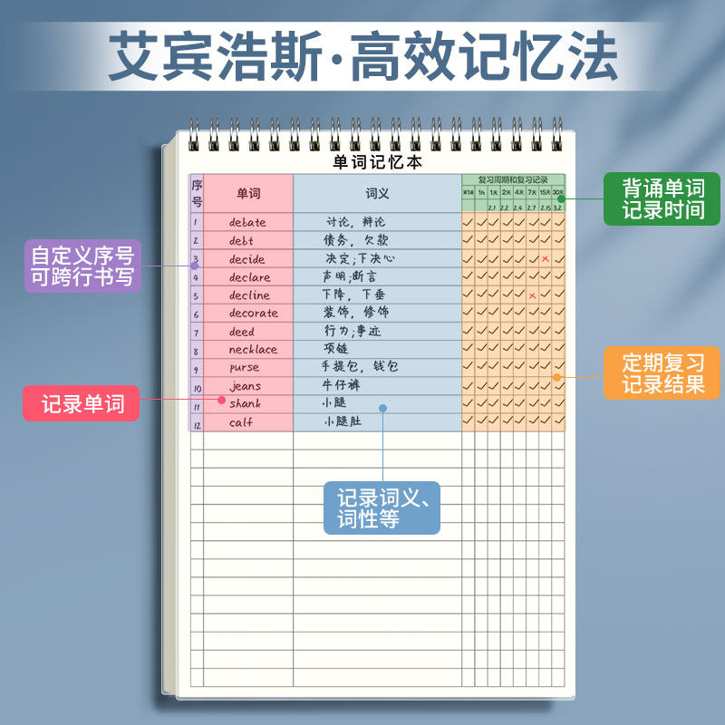 英语单词本记忆艾宾浩斯记忆曲线记背神器