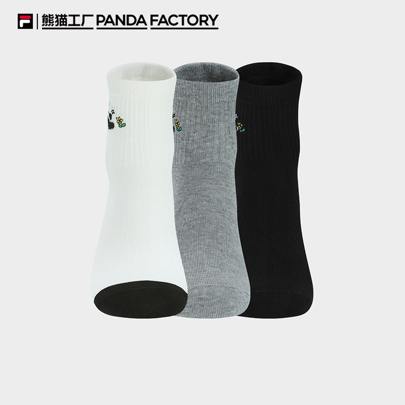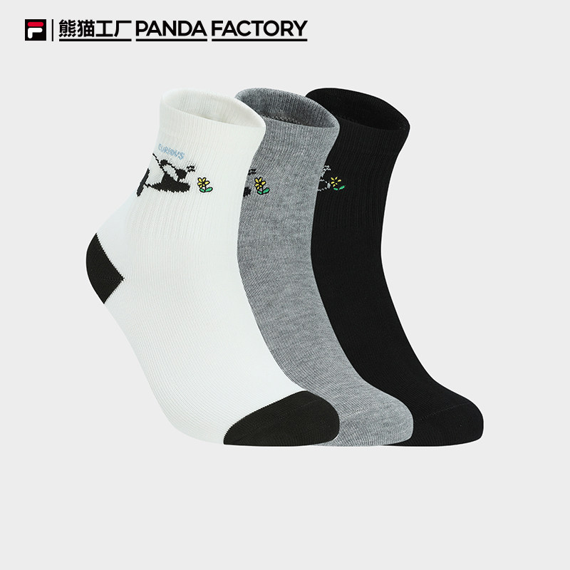 新一线萌主|FILA 斐乐女袜熊猫中腰袜套装休闲运动袜中筒三双装
