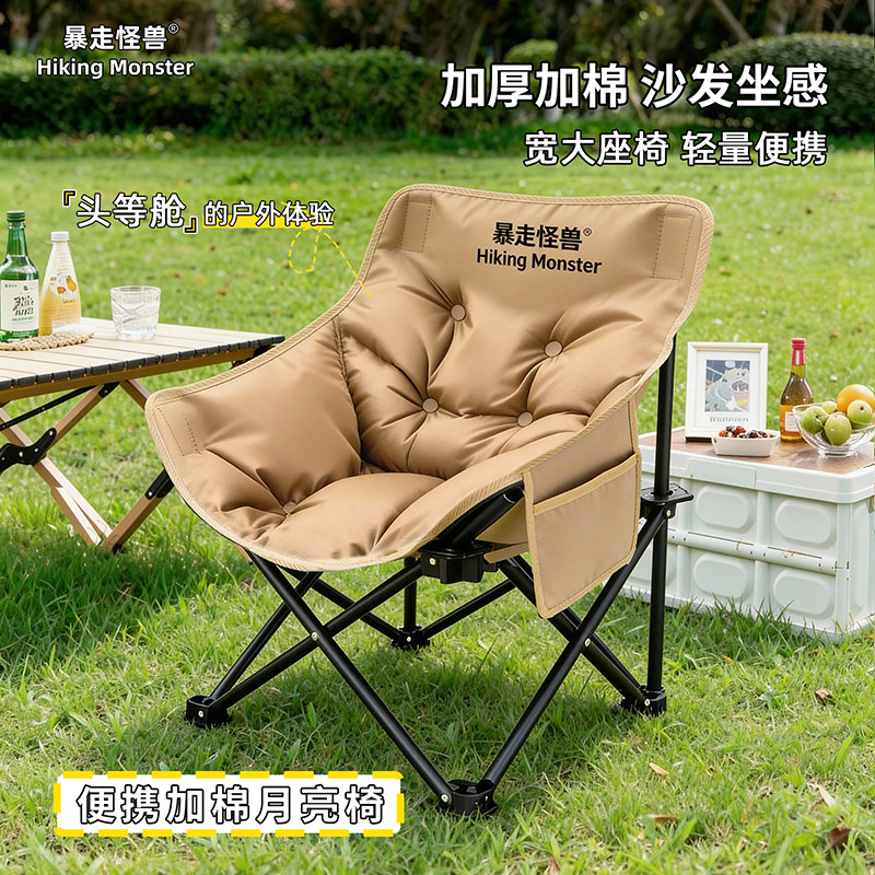 暴走怪兽户外便携折叠椅钓鱼椅加棉月亮椅露营座椅碳钢椅马扎绿色