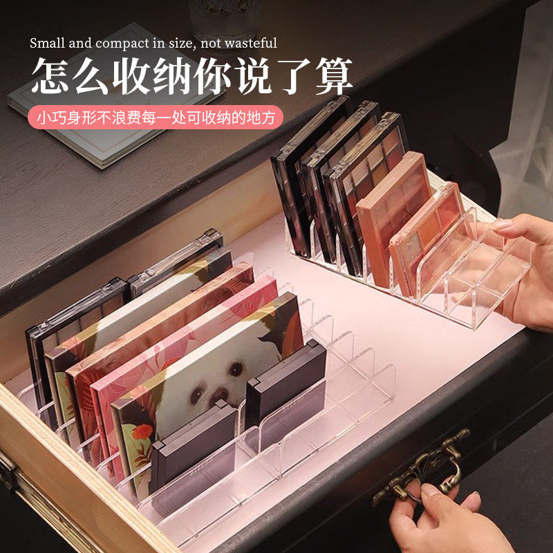 眼影盘收纳盒粉饼抽屉分隔格透明塑料桌面彩妆腮红化妆品置物架子
