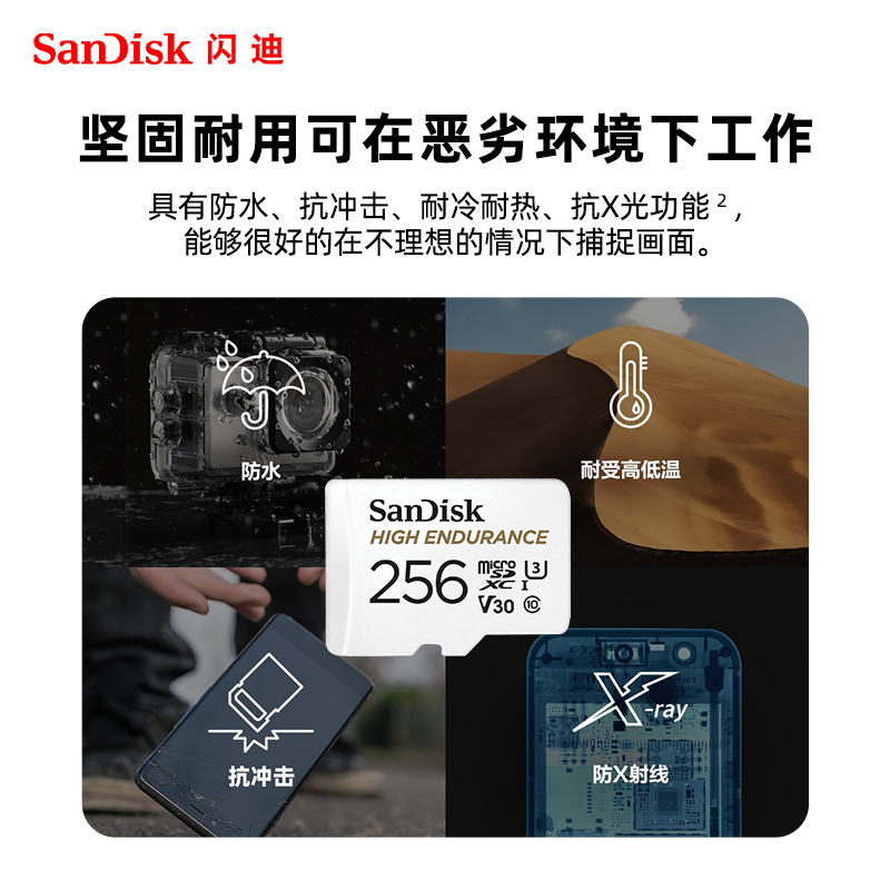 闪迪sd卡256g存储卡行车记录仪tf卡micro sd卡视频监控手机内存卡