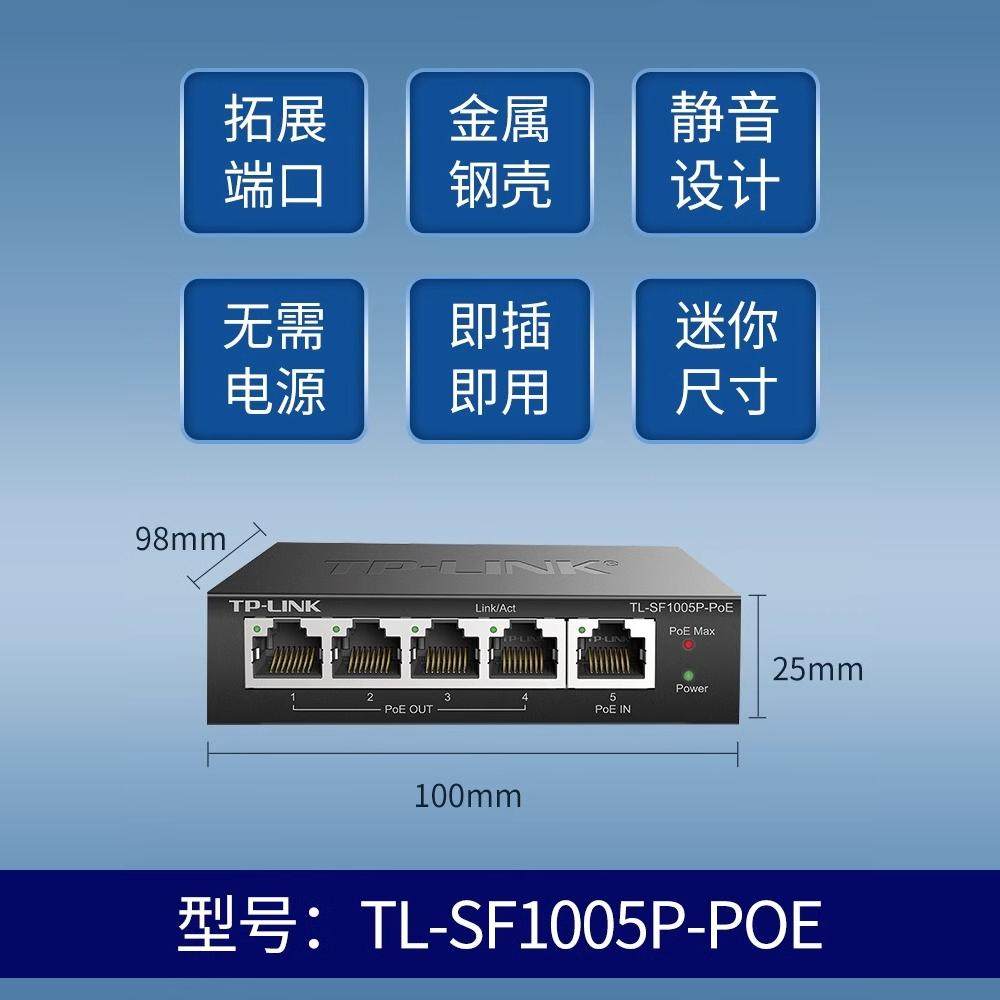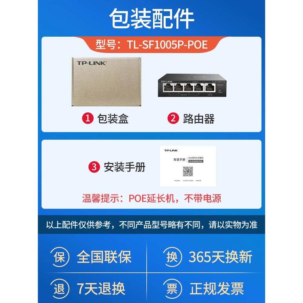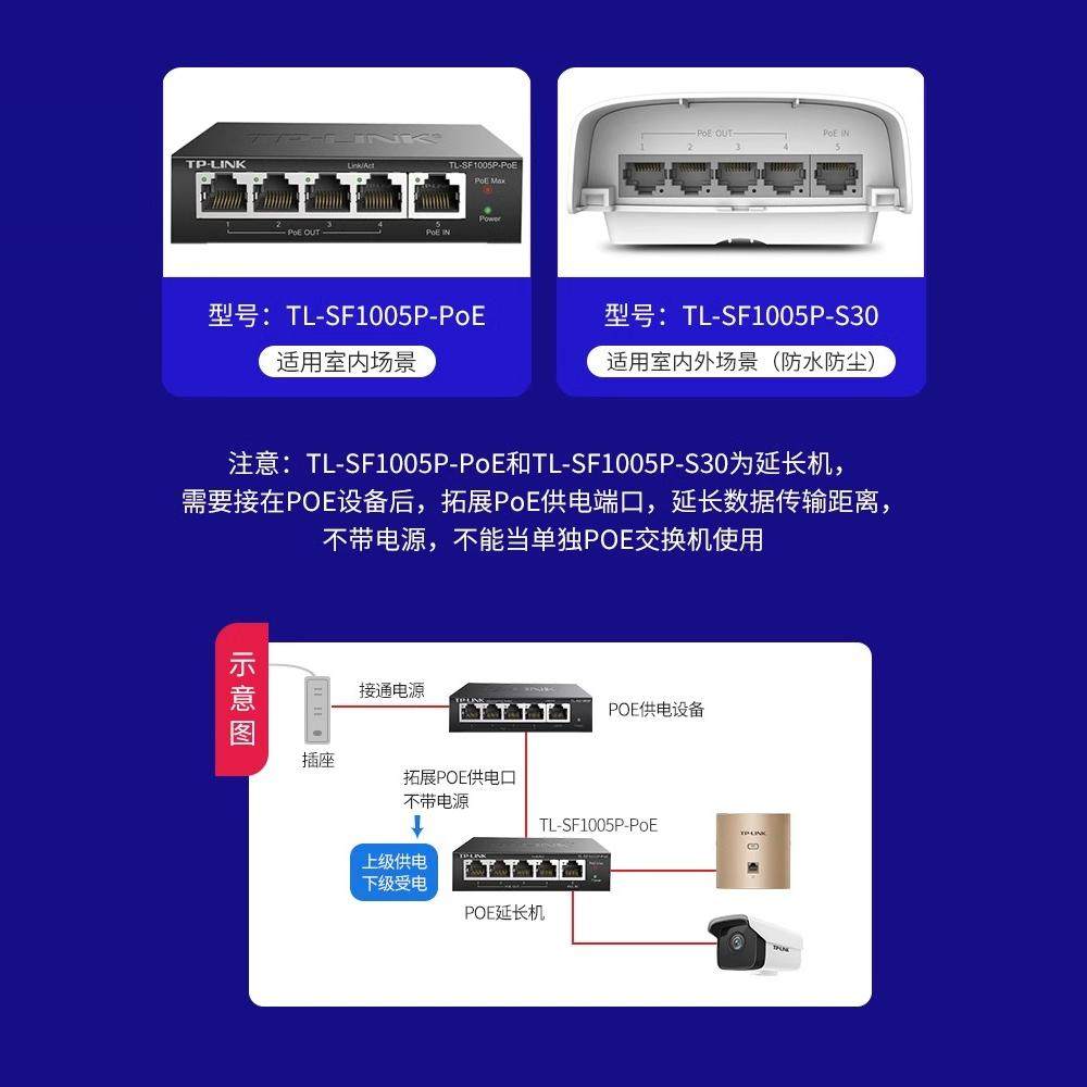 TP-LINK标准poe中继器一分二兼容海康威视监控摄像头分四网线室外防水千兆网络延长供受电一体交换机repeater
