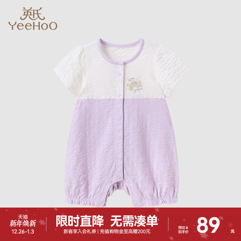 英氏婴儿连体衣新生儿衣服夏宝宝短袖包屁衣薄款哈衣夏季童装爬服
