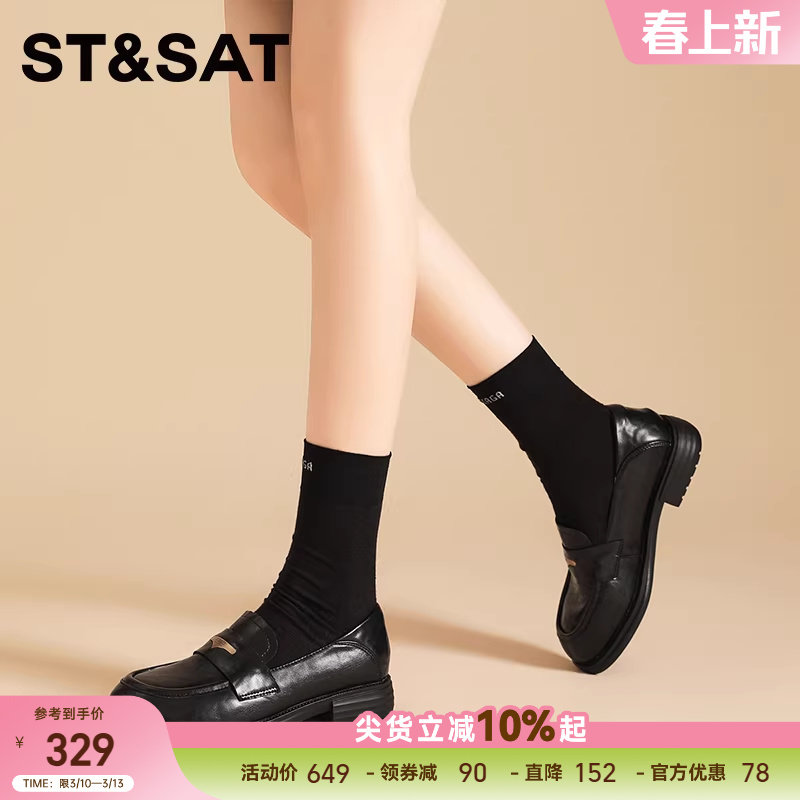 星期六厚底乐福鞋女款春季新款英伦风粗跟小皮鞋黑色单鞋百搭女鞋