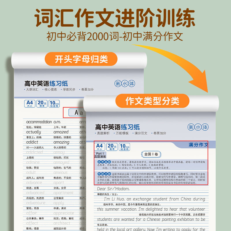 英语满分作文初中高中字帖高考满文高分模板教材英文练习
