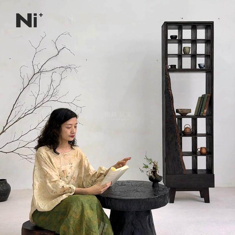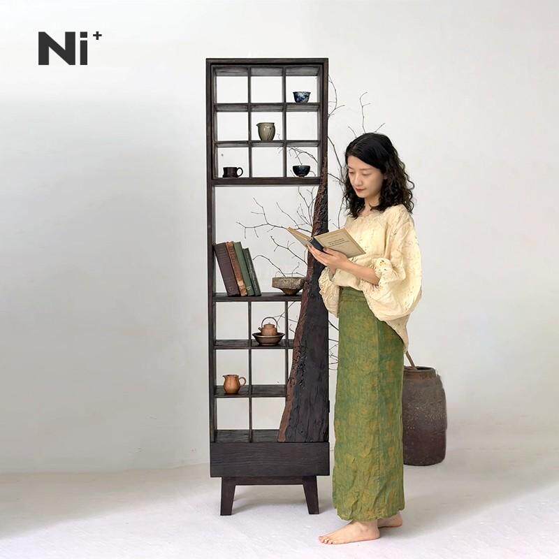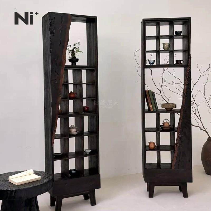 Ni尼家侘寂风博古架实木茶杯架中式多宝阁置物古董架子格架摆件柜