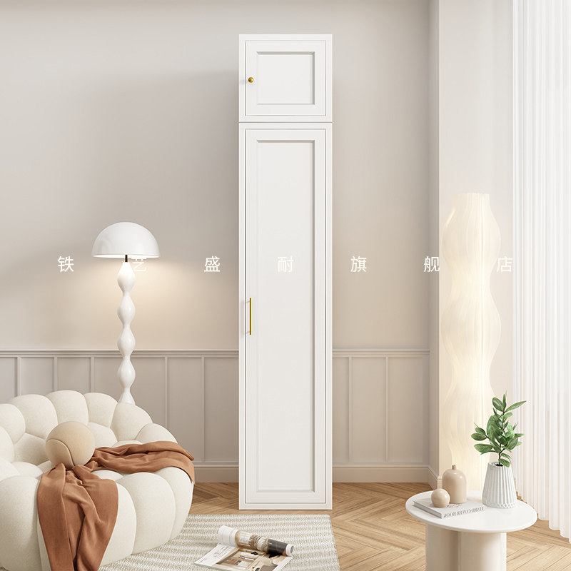 2.4米高法式奶油风单门夹缝衣柜顶柜组合窄衣橱卧室小型收纳柜子