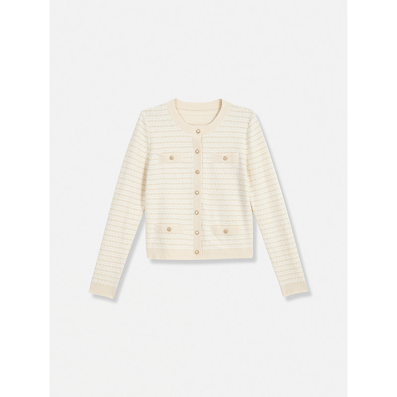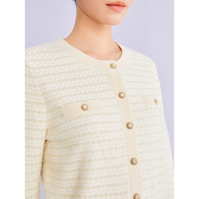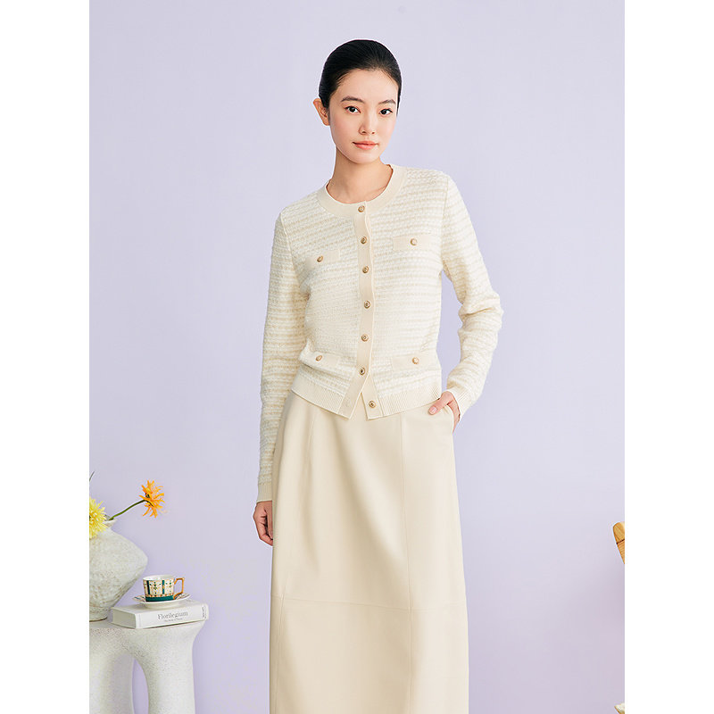 YINER音儿2026春季新款小香风亮丝澳洲美丽诺羊毛混纺针织开衫
