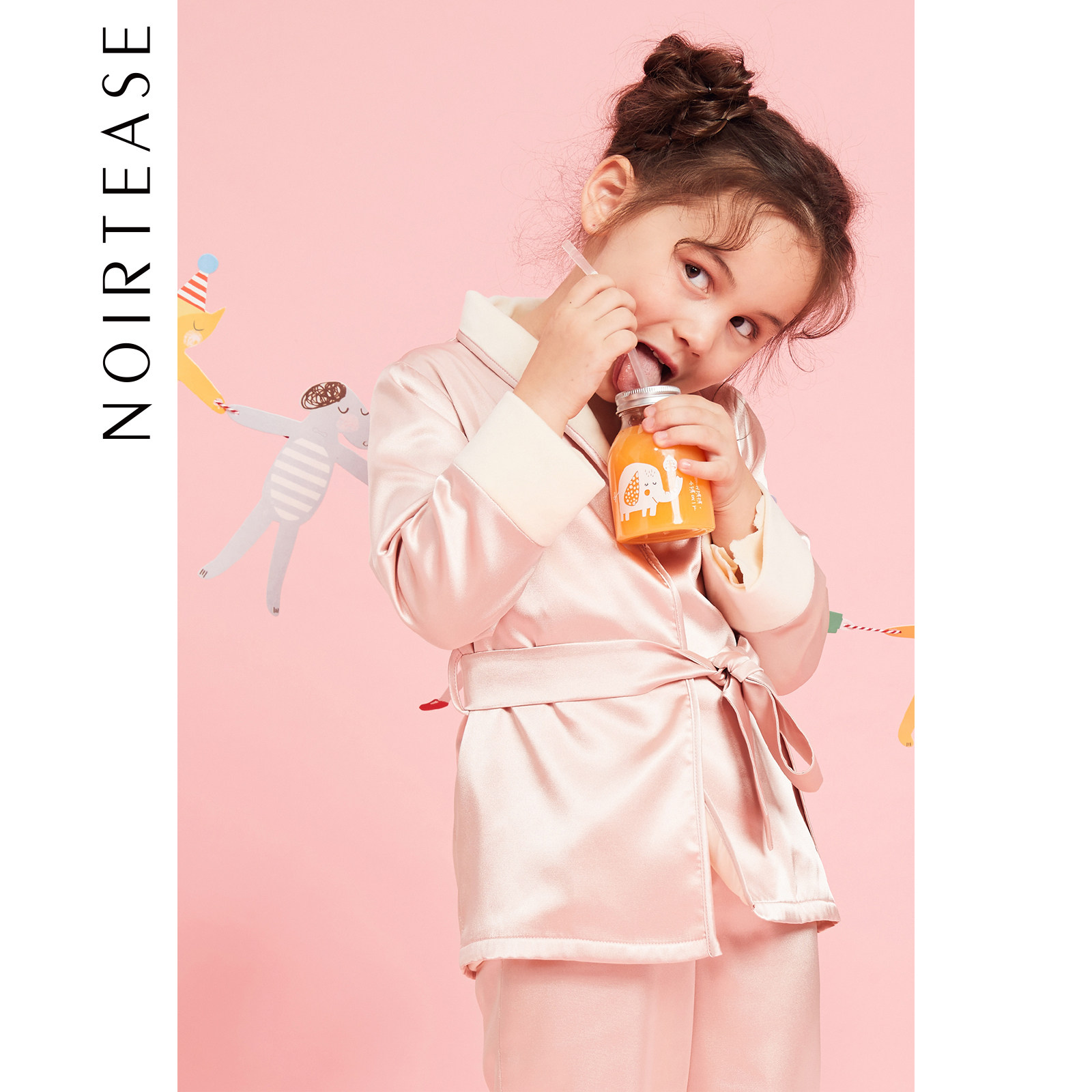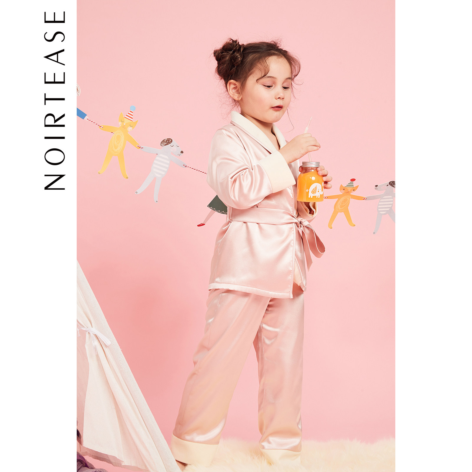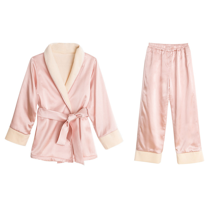 NoirTease女童睡袍睡衣套装少女儿童秋冬加绒丝质长袖保暖家居服
