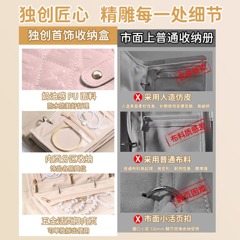 黄金首饰收纳册防氧化高档饰品盒珠宝便携旅行绒布收纳包戒指项链耳环手链密封袋分格活页书保存神器带拉链