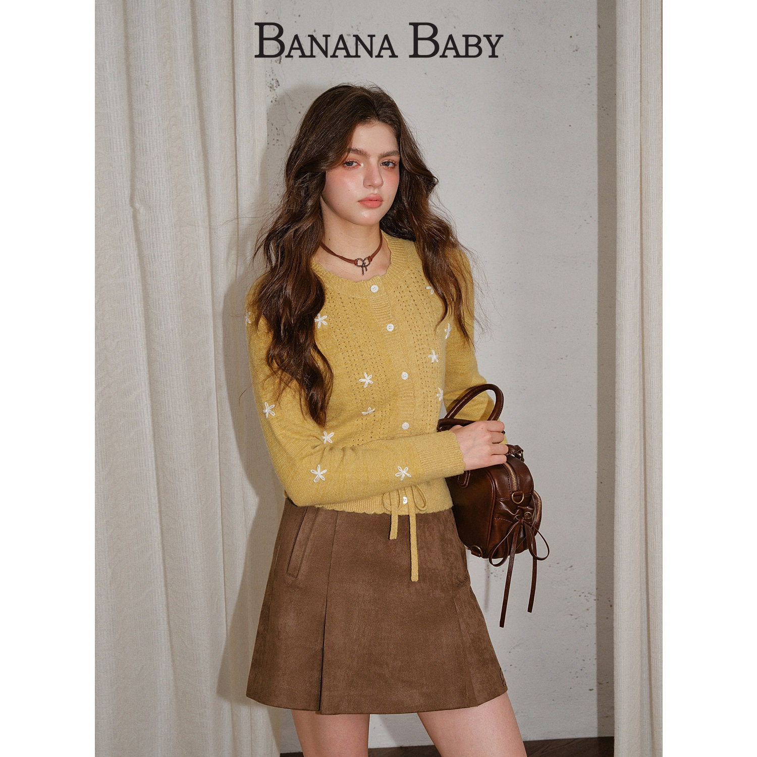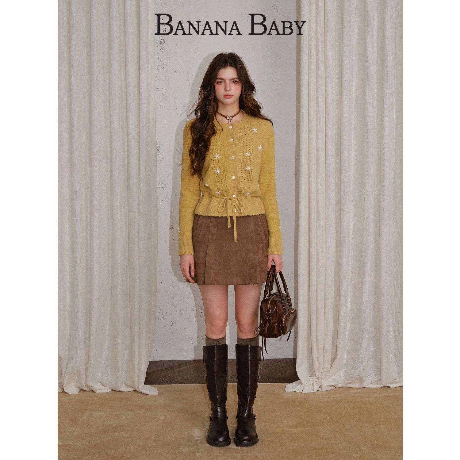 BANANA BABY2025年冬新款复古感高腰短裙女仿鹿皮绒A字显高半身裙
