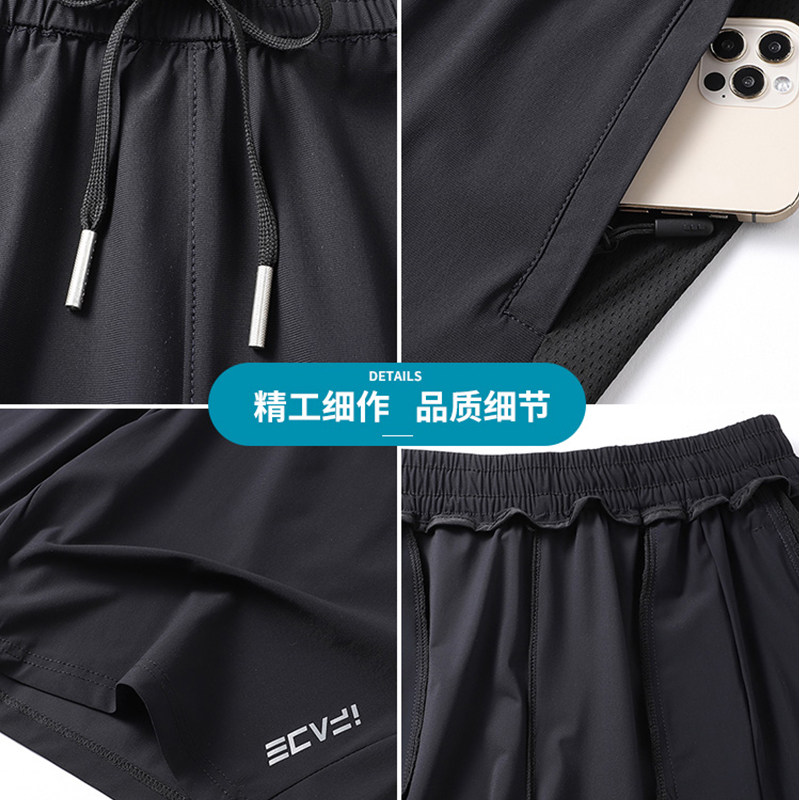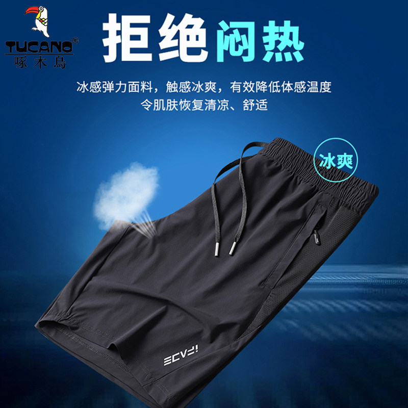 啄木鸟男士短裤男夏季冰丝薄款中裤宽松休闲沙滩裤五分运动短裤男