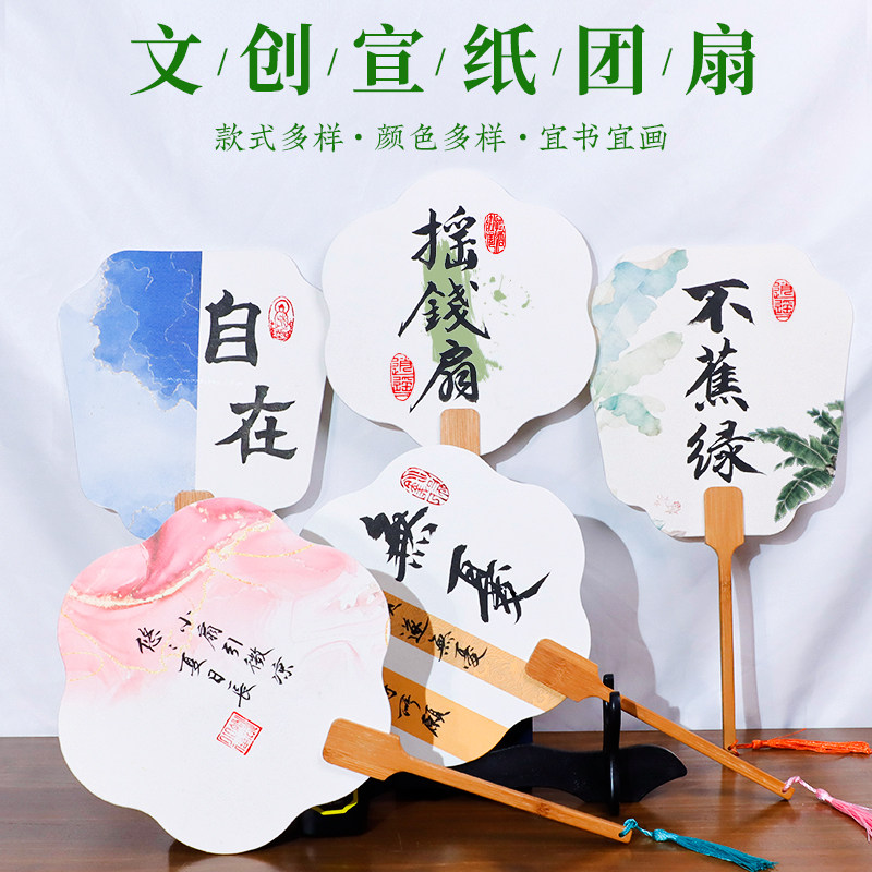 加厚宣纸团扇空白半生熟扇面文创古风国画绘画扇子毛笔书法专用宫廷圆形diy材料中国风纸扇漂漆扇子材料包