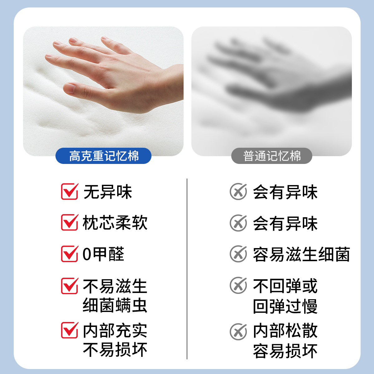 水星家纺记忆棉枕头芯慢回弹深睡枕A类抑菌成人学生宿舍呵护颈椎