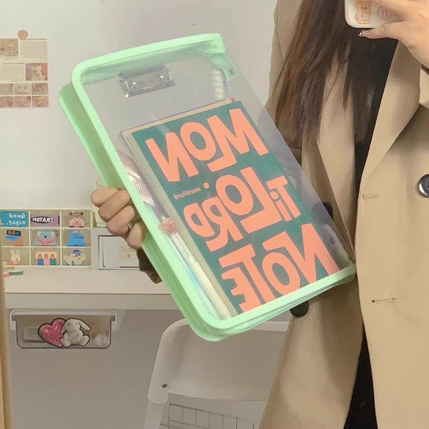 L型学科目分类袋透明网纱文件袋拉链大开口学生手提拎书袋考试用