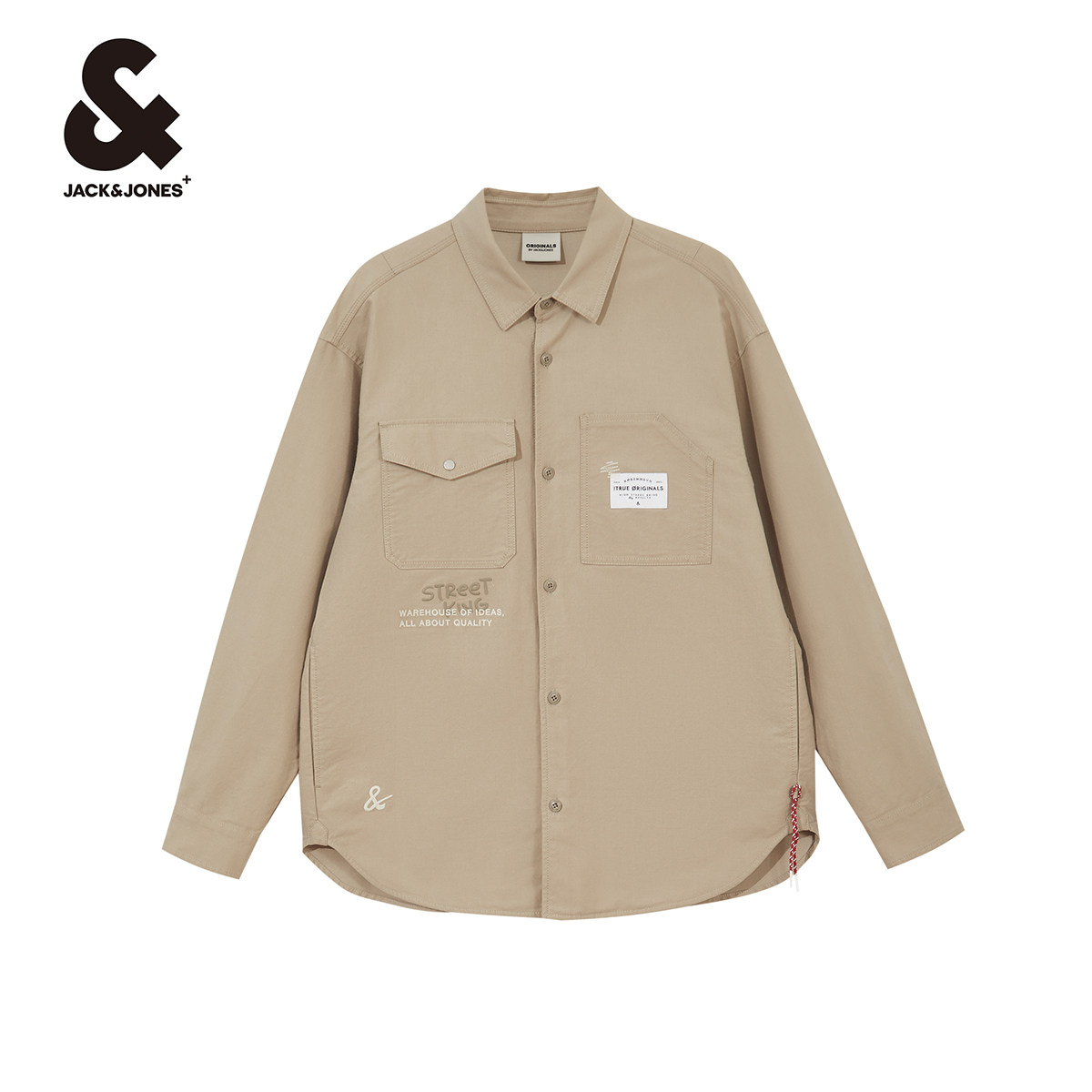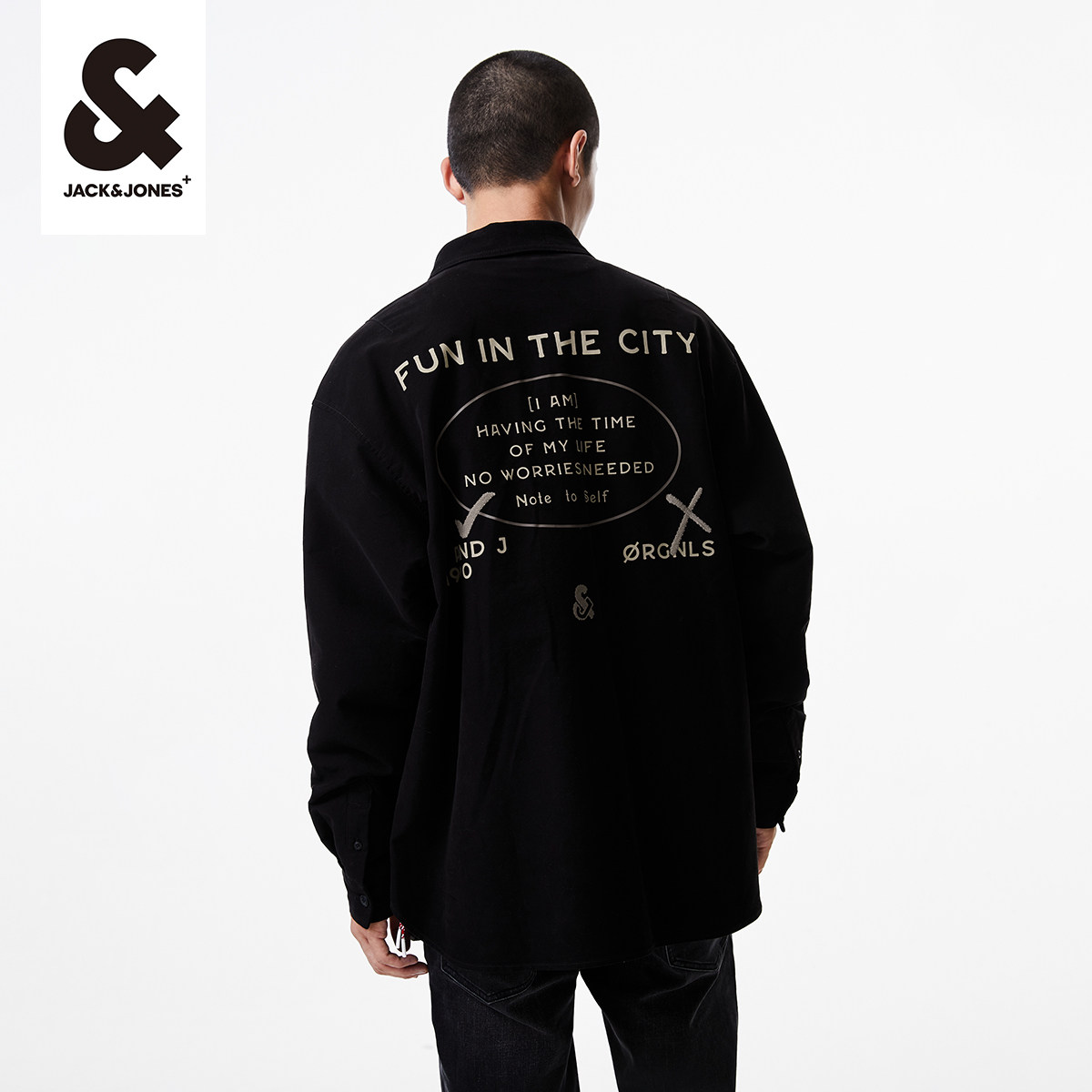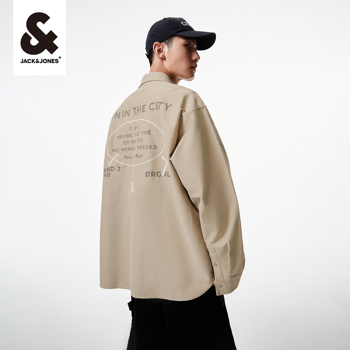杰克琼斯奥特莱斯2023秋季新款男士宽松休闲字母工装风衬衫男装