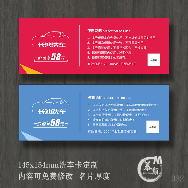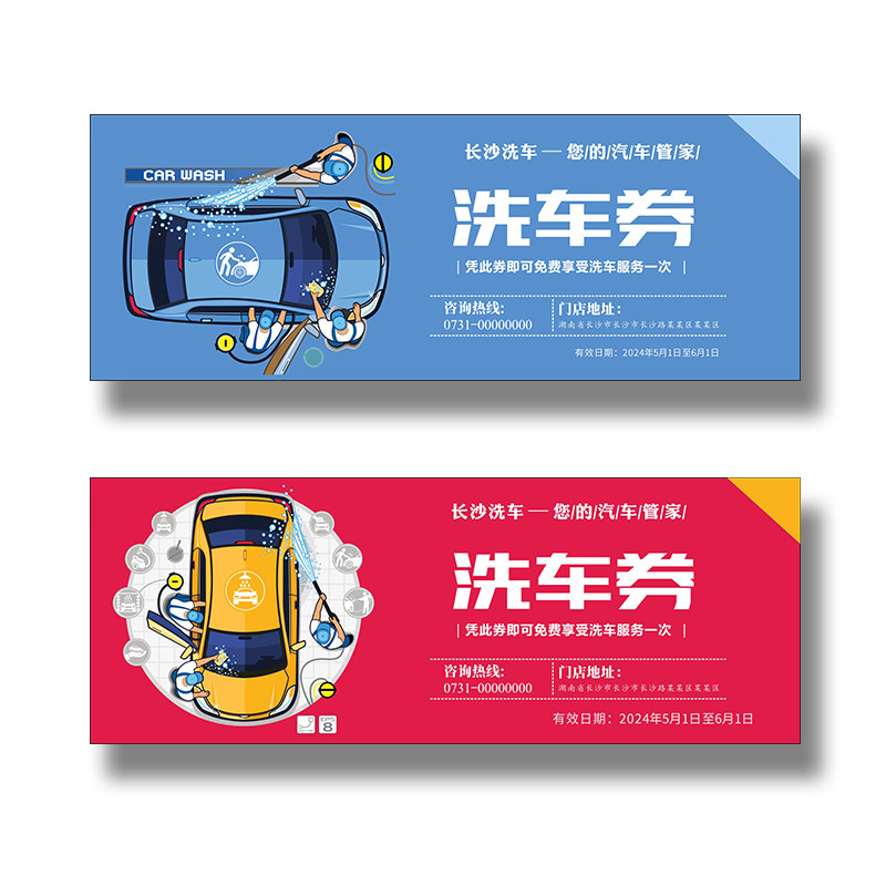 洗车券优惠券定制汽车维修美容店活动广告卡设计防水宣传印刷双面