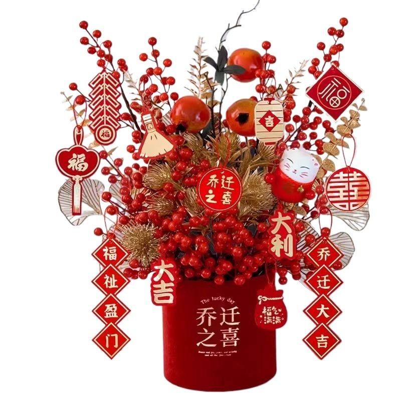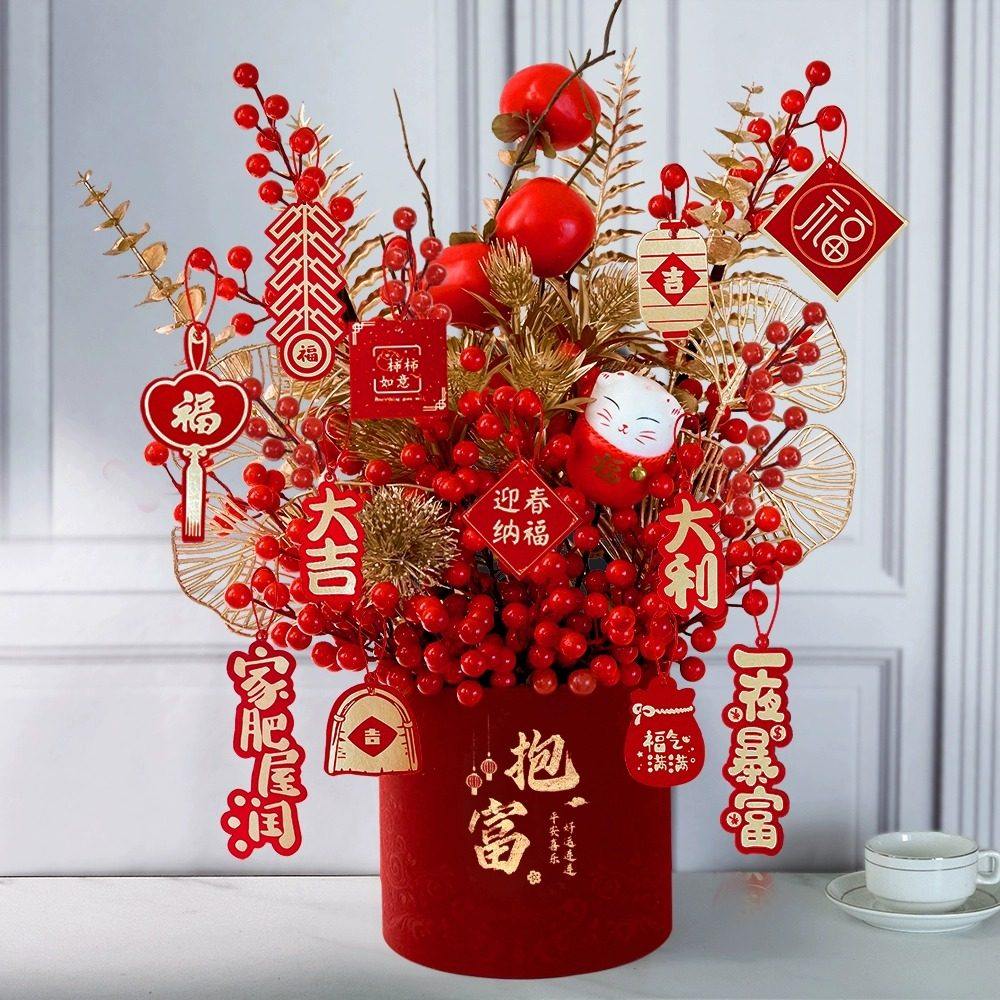 过年2026仿真发财果马年装饰福桶乔迁之喜新居摆件新年宵花抱抱桶