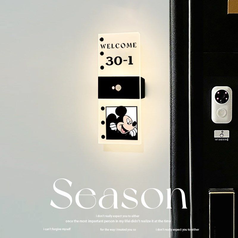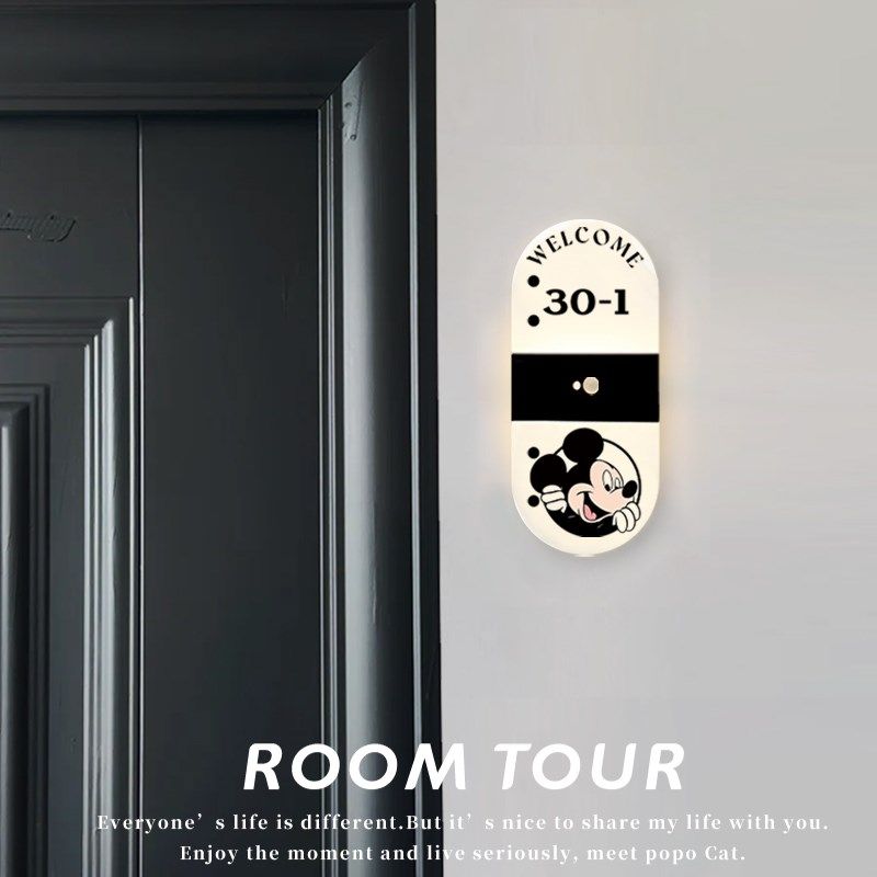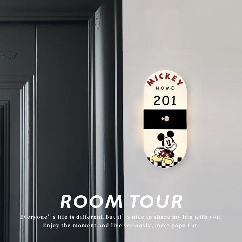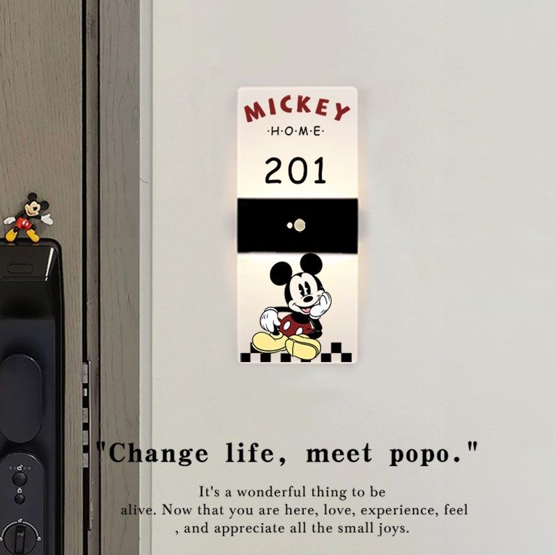 米奇门牌发光感应灯牌U充电磁吸壁灯家用装饰房门号码提示牌