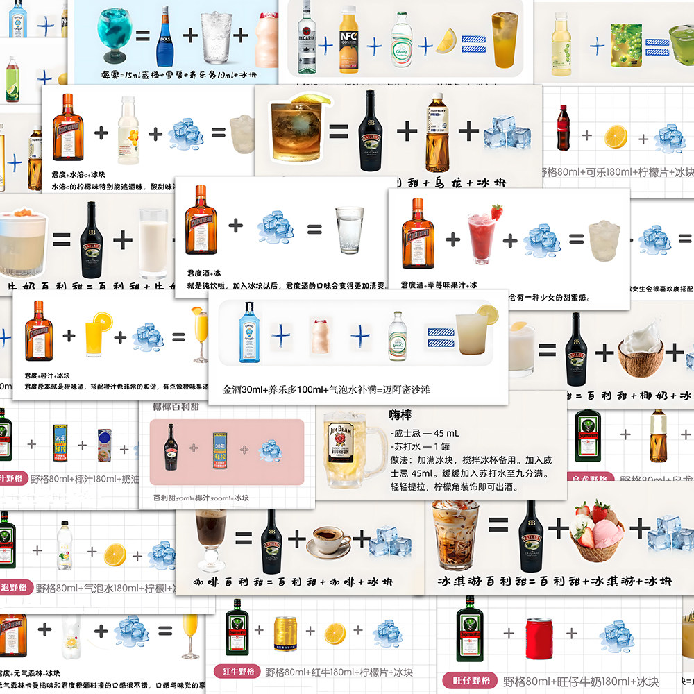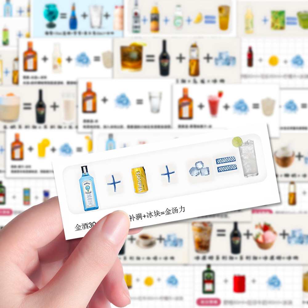 144张零失误调酒贴纸便利店鸡尾酒调制万能公司笔记本iPad贴画