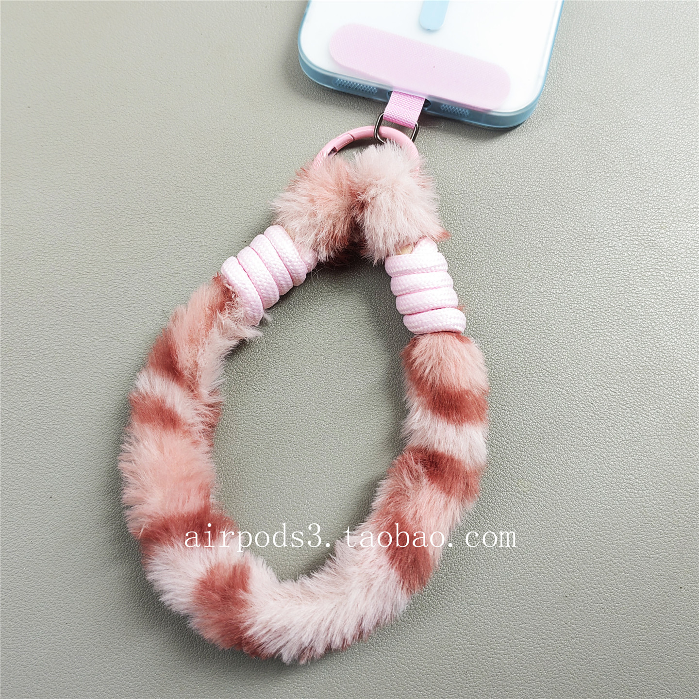 ins秋冬撞色豹纹毛绒手机挂绳便携手腕绳ccd相机包包饰品挂件耐用