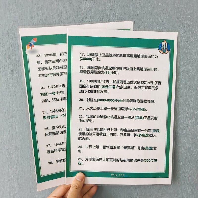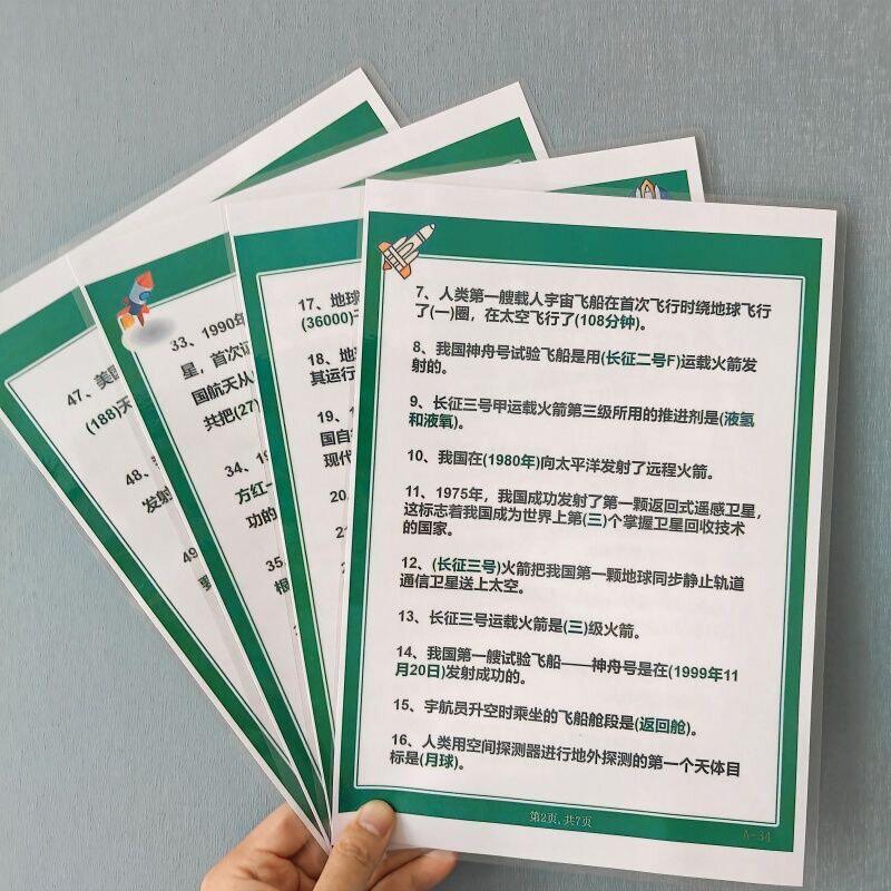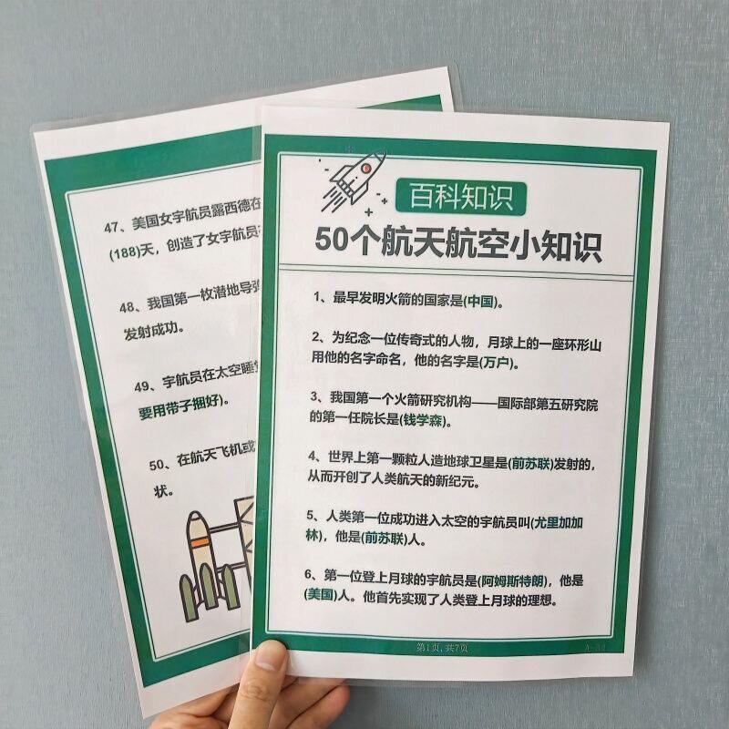 百科知识50个航天航空小知识儿童课外科普航天知识塑封挂图认知卡
