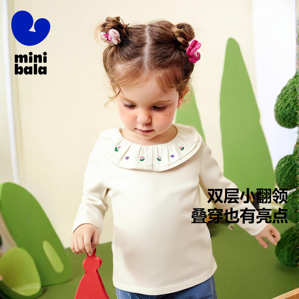 [3A抑菌]迷你巴拉巴拉女童宝宝长袖T恤亲肤2025秋新品娃娃领上衣