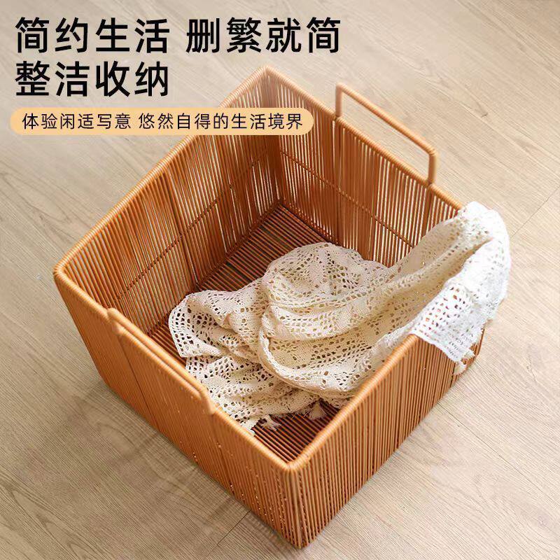 轻奢家用卧室浴室衣服收纳酒店洗衣藤编脏衣篓家用仿藤编脏衣篮