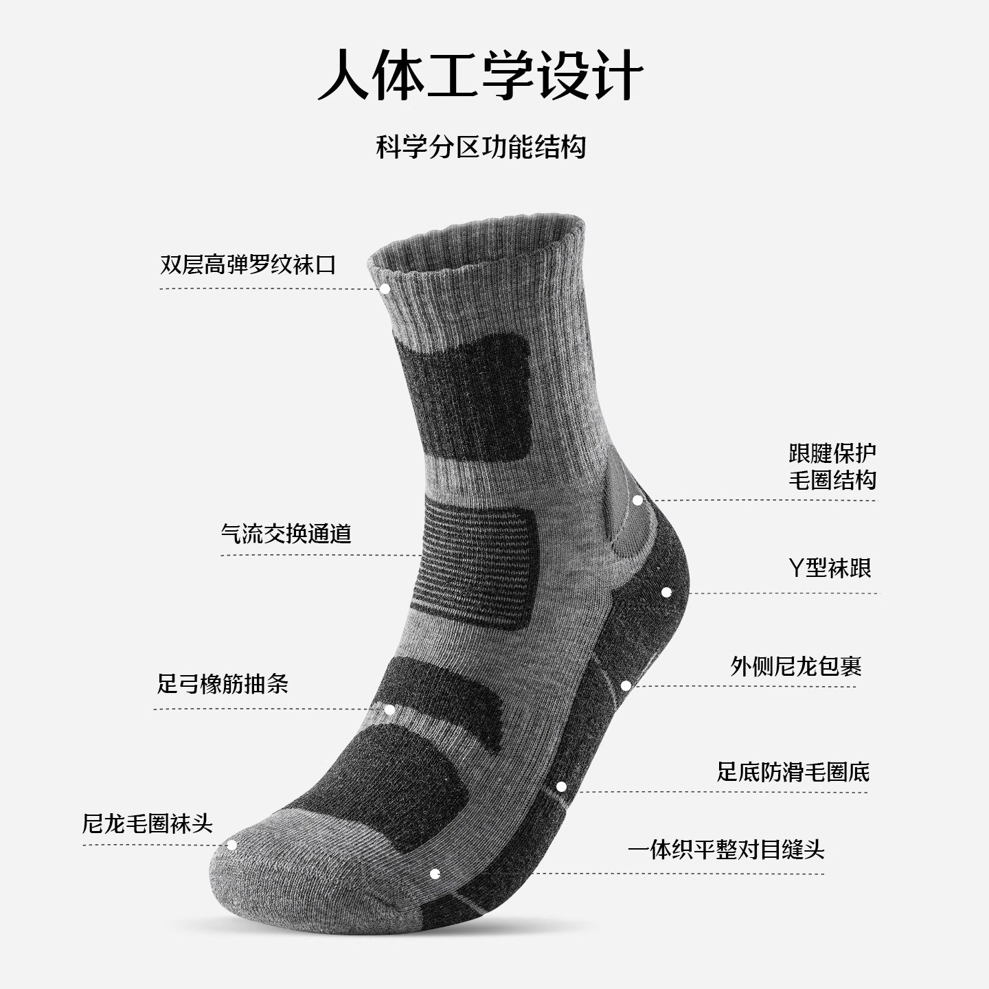 美利奴羊毛袜子登山秋冬季男女户外徒步骑行袜加厚保暖中筒袜速干