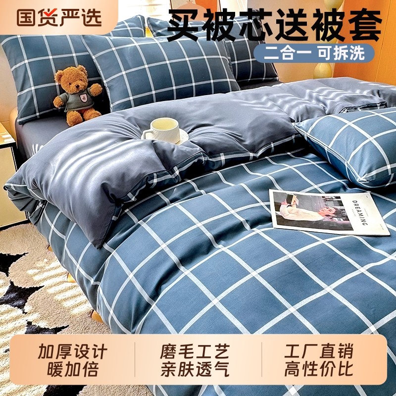 被子加被套全套一整套冬季被芯可拆洗一体学生宿舍出租屋棉被褥子