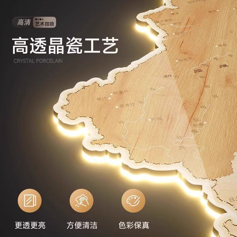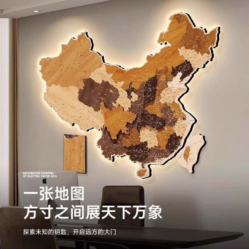 中国地图公司客厅沙发背景墙挂饰装饰画拼接立体感LED发光壁画灯