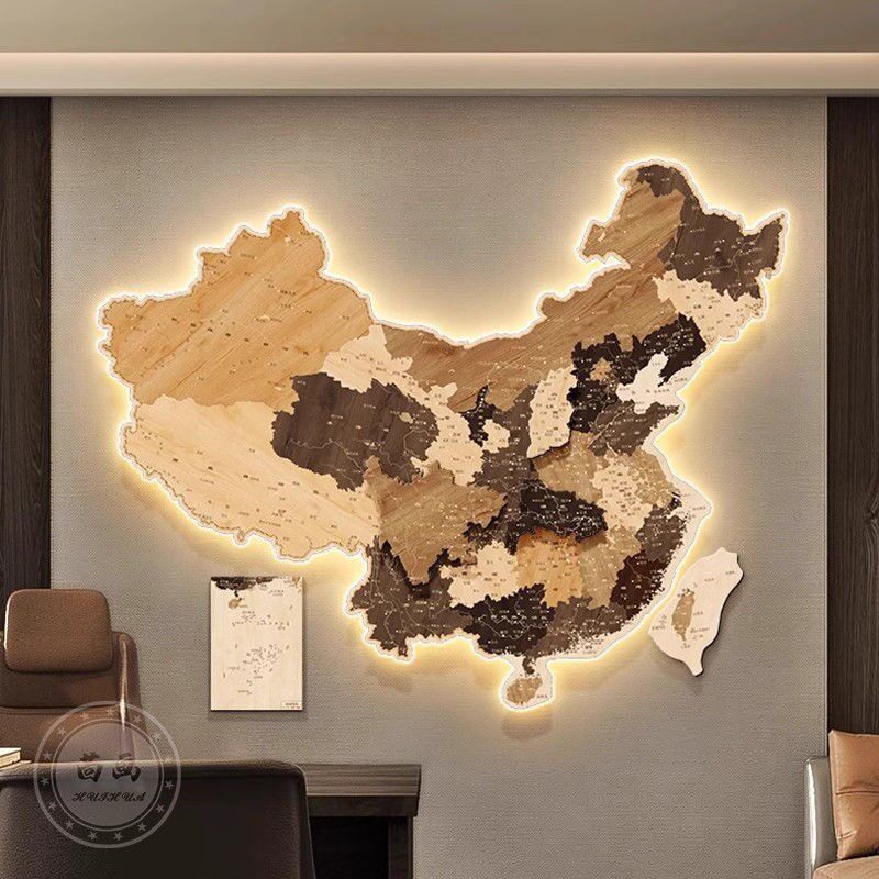 中国地图公司客厅沙发背景墙挂饰装饰画拼接立体感LED发光壁画灯