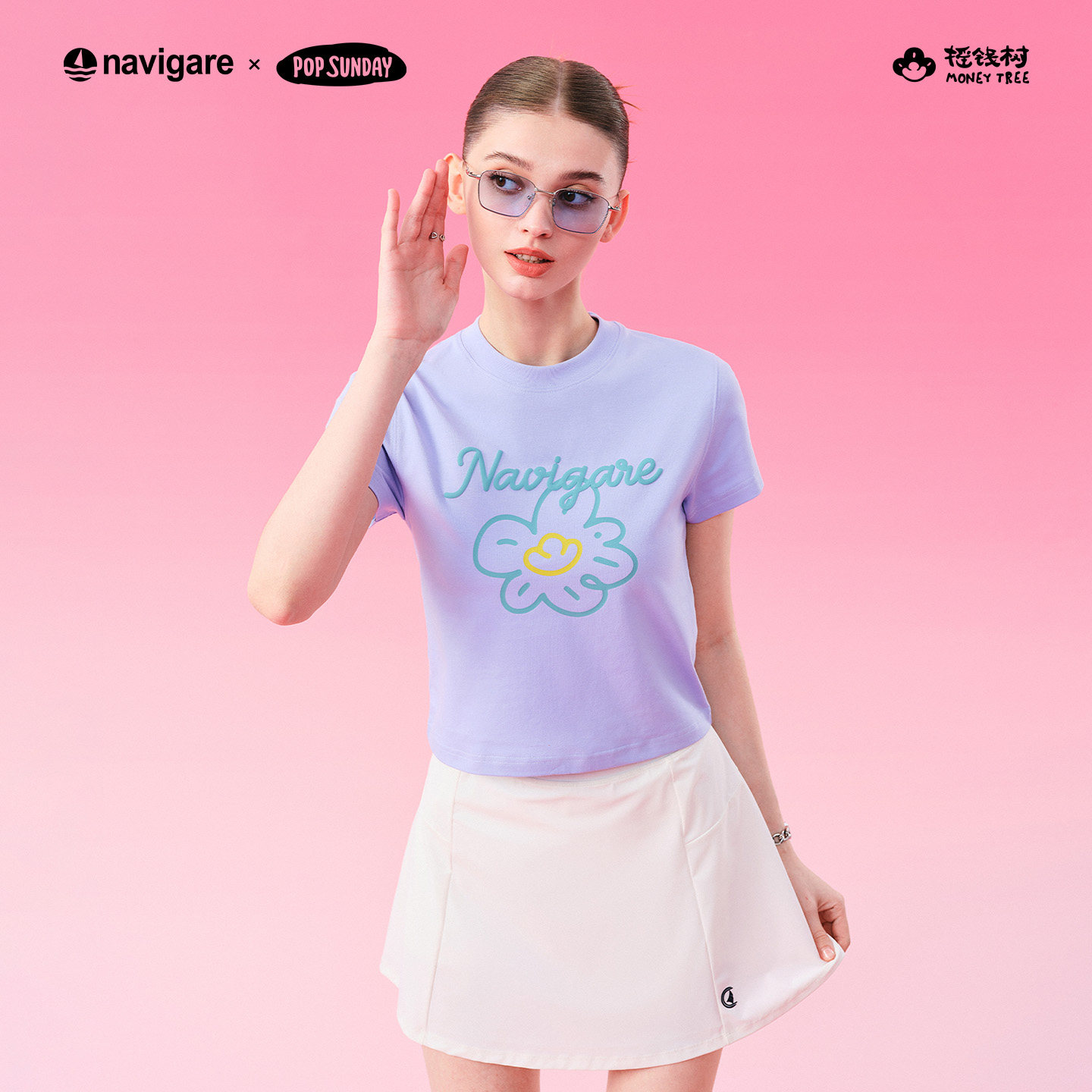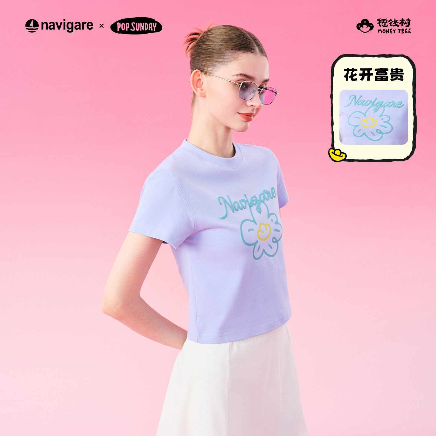[POPSUNDAY摇钱树联名]Navigare小帆船紫色套头T恤女短袖百搭上衣