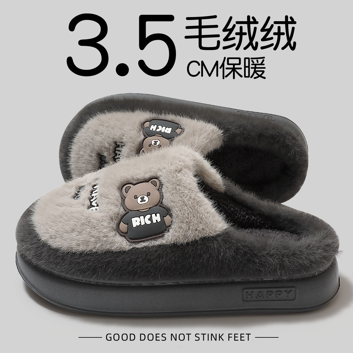 轻臣冬季棉拖鞋女款2026新款秋冬防滑厚底保暖情侣毛绒毛毛拖鞋