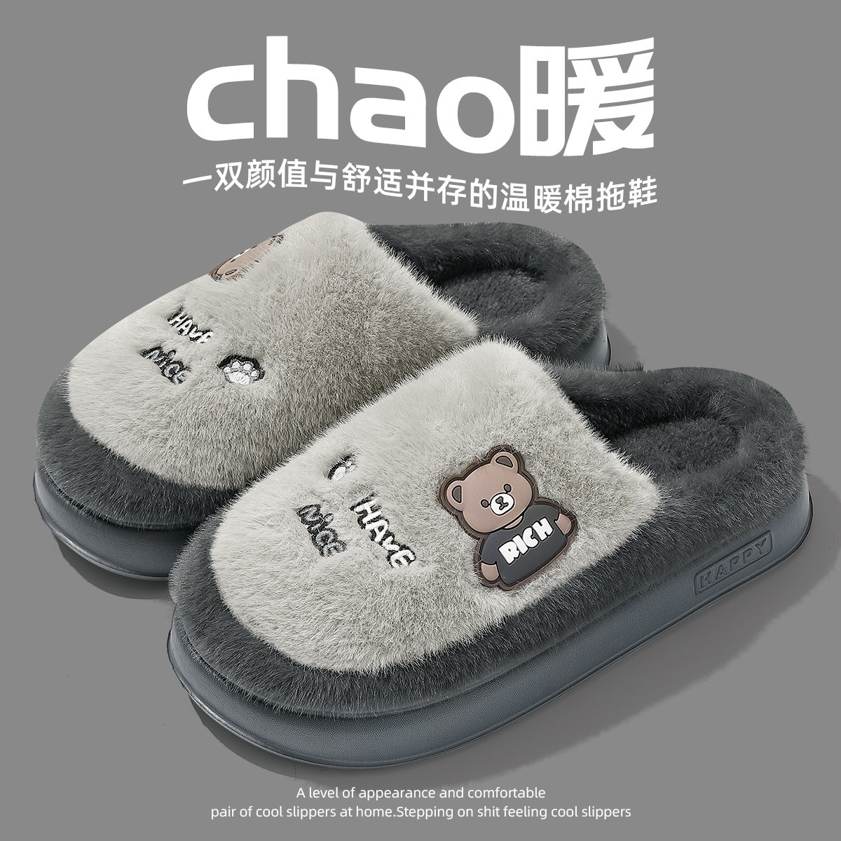 棉拖鞋女款冬季2025新款保暖防滑室内家居家用情侣可爱毛毛拖鞋男