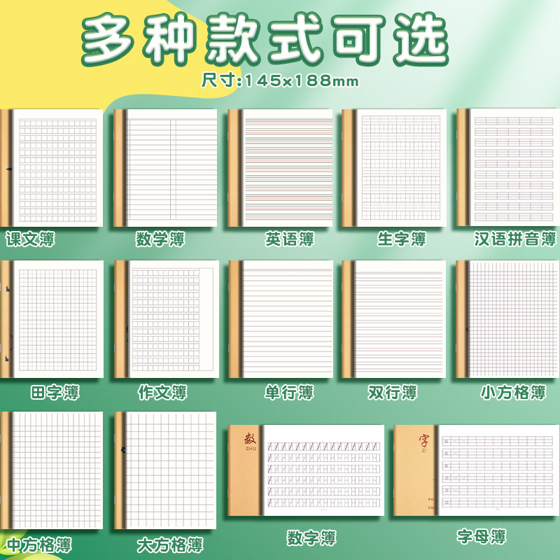 牛皮纸作业本小学生专用教育局统一二三四年级作业本全套语数英幼儿园汉语拼音田字格本子生字薄作文本课文本