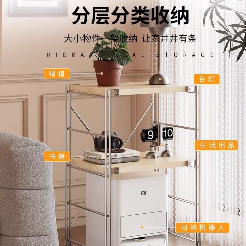 原木风置物架家用落地多层收纳架子扫地机器人洗衣机下空式高脚架