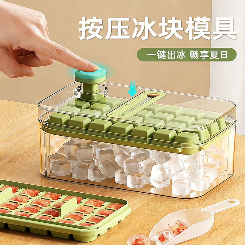 食品级冻冰块模具按压大冰格制冰神器家用带盖冰箱储存收纳盒新款